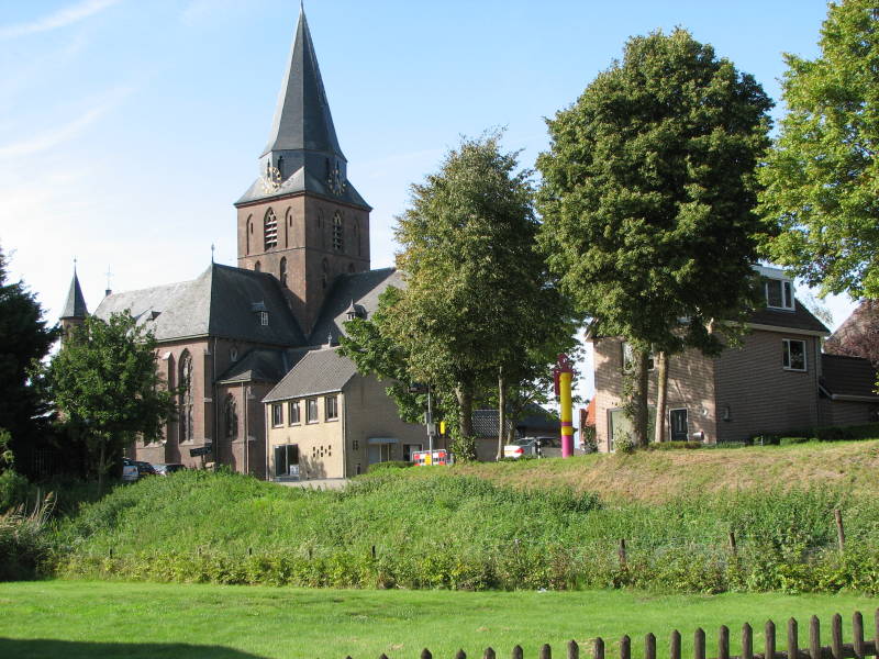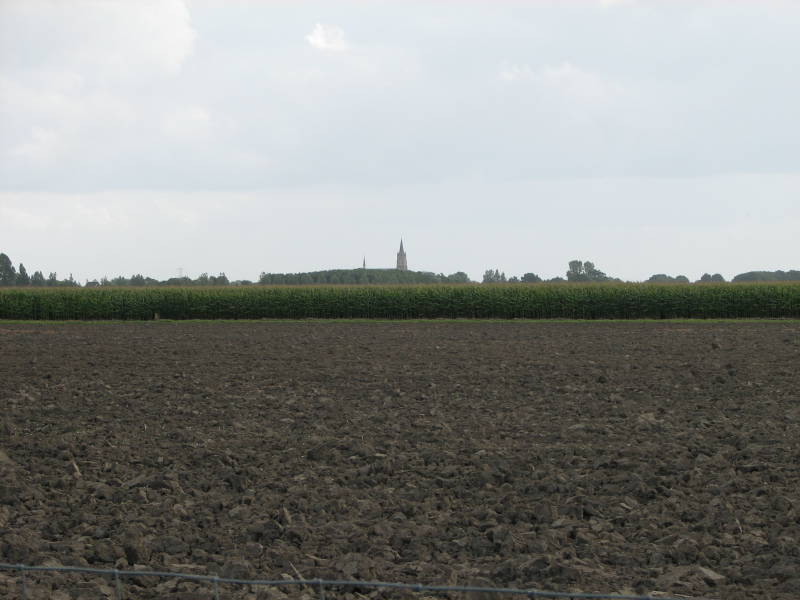 We doen nog wat boodschappen en zijn om twee uur op onze bestemming, het is droog en we kunnen buiten zitten. De middag brengen we bij de camper door en vanavond TV kijken. Morgen wordt het hopelijk iets beter weer en kunnen we gaan fietsen. Vanuit de camper zien we de kerk van Oud Gastel en kijken we over de landerijen uit.