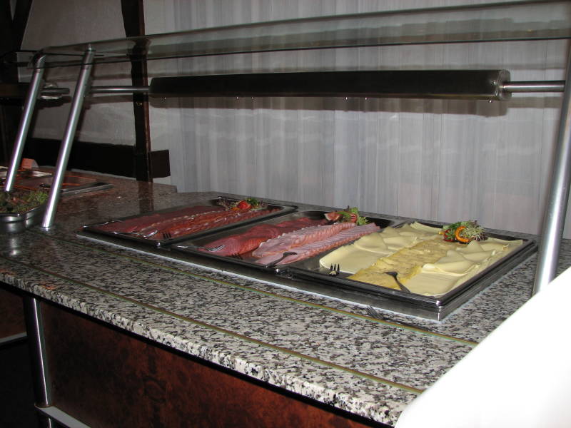 Een impressie van het buffet en hoe wij zitten te brunchen. het heeft ons prima gesmaakt en zoals altijd eet je van een buffet meestal teveel, maar een brunch is een vervanger voor twee maaltijden, n.m.l. ontbijt en lunch. Dus tot de avond niets meer.