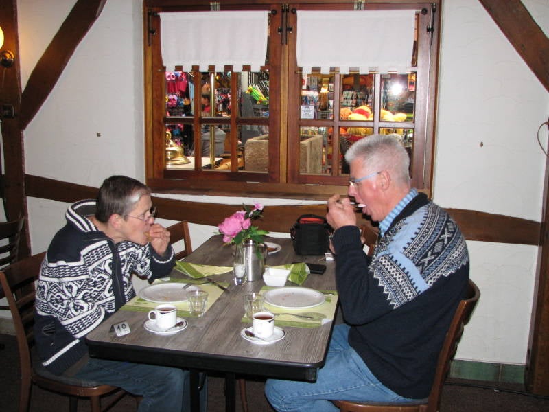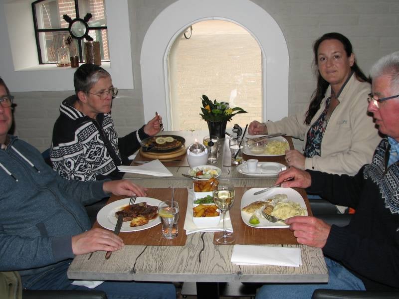 Om vier uur naar het restaurant waar we een tafel hebben gereserveerd, wel wat vroeg, maar de vrienden moeten uiterlijk weer om 9 uur thuis zijn om hun moeder op te vangen.