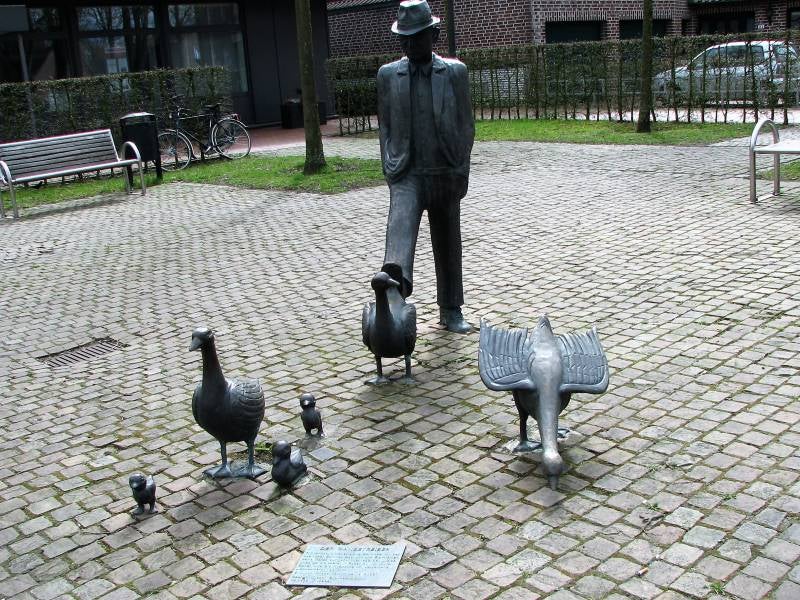 Na het Zwillbrocker Ven zijn we verder gereden richting Ellewick, waar we de Ganzenhoeder op het plein zien staan. Onderweg hebben we nog even gerust en wat gegeten.