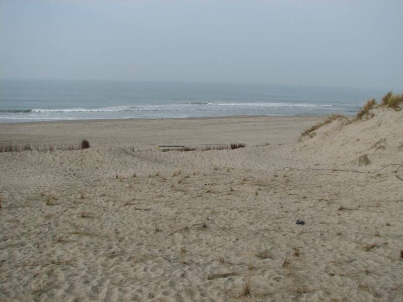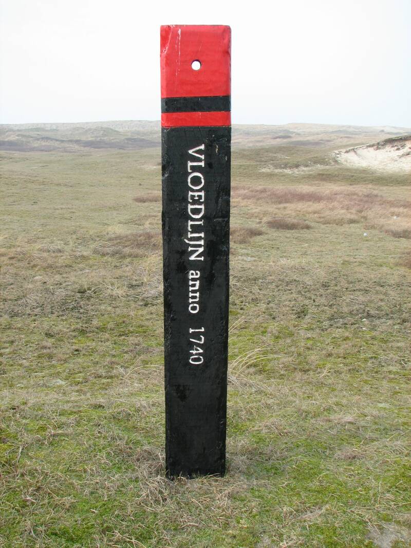 We komen ook nog een paal tegen waarop staat waar de vloedlijn was in 1740, deze paal is ongeveer 1,5 km van de huidige vloedlijn af, dat betekent dat het eiland zichzelf verplaatst onder invloed van de wind en het water. Het is op de foto's goed te zien hoe rustig het is, in het hoogseizoen is dit wel anders.