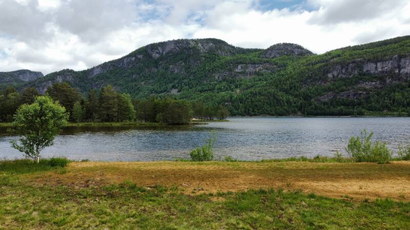 Het is een prachtige dag, met een heerlijke temperatuur van boven de 20 graden Celcius. We hebben nog lang buiten gezeten en genoten van de rust en de mooie omgeving. Morgenochtend gaan we hier weg en gaan naar Kristiansand en zoeken daar een vrije camperplaats op, die dicht bij de haven ligt, zodat we vrijdagochtend makkelijk naar de boot kunnen rijden. Nog twee dagen in Noorwegen en dan is het alweer voorbij en zitten we weer op de boot naar de Eemshaven in Groningen. Maar zover is het nog niet, dus nog even genieten.