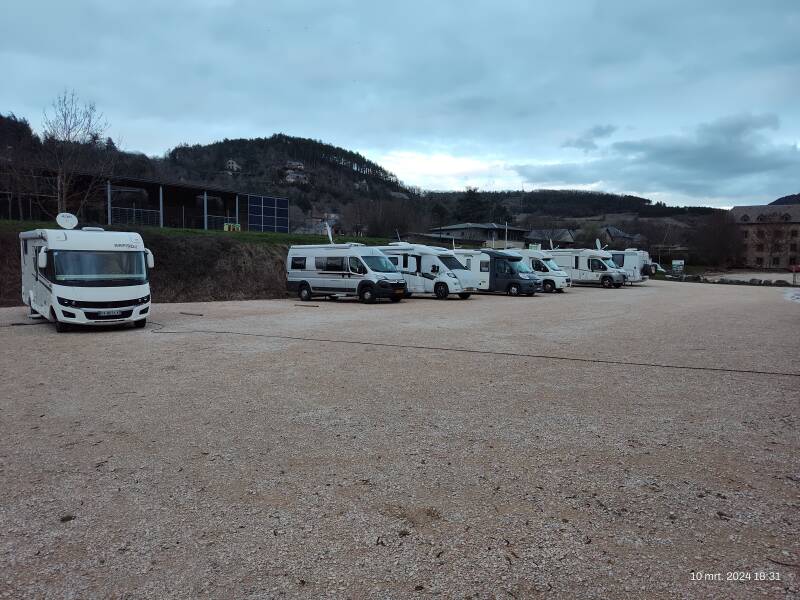 Het heeft de hele nacht geregend en ook wanneer we vertrekken regent het nog steeds. We gaan in het dorpje eerst diesel tanken en rijden dan naar de rijksweg die naar Troyes gaat. Vanaf Troyes gaan we via de N77 naar Auxerre, daarna via de N151 naar Nevers en via de A71 richting Millau, voor Millau gaan we de A71 af via afrit 40, naar het plaatsje La Canourgue waar het camping - car - park is. Het is er redelijk druk, maar er is ook een plaats voor ons. Onderweg hebben we regen, zon en sneeuw gehad.
