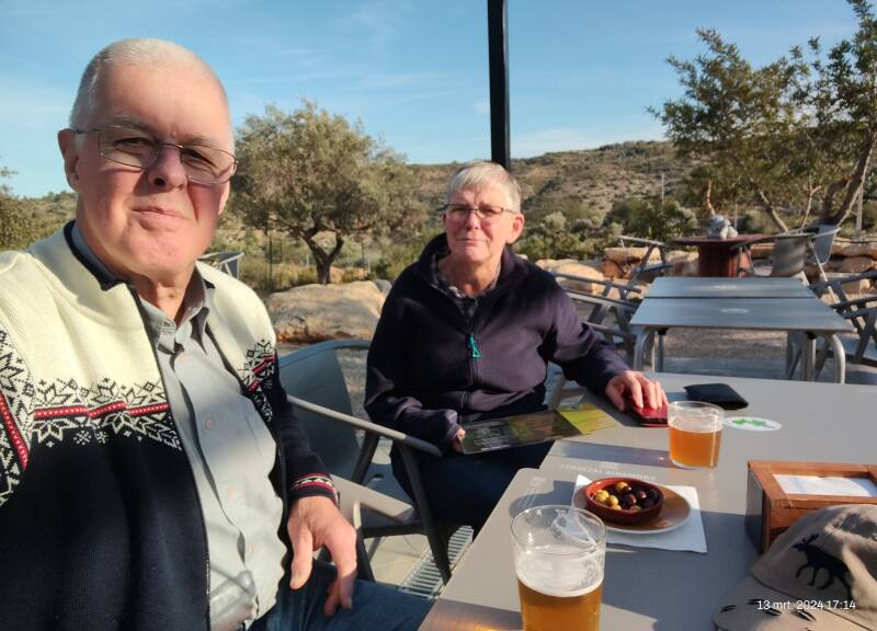De paella smaakt heerlijk en is prima verzorgt, we drinken nog een koffie ter afsluiting en gaan dan heerlijk van het zonnetje genieten, het is 20 graden Celcius. Morgen gaan we verder en gaan dan het binnenland in. We gaan nog wel een stukje verder naar het zuiden, maar tot hoever dat weten we nog niet want het weer is hier ook prima.