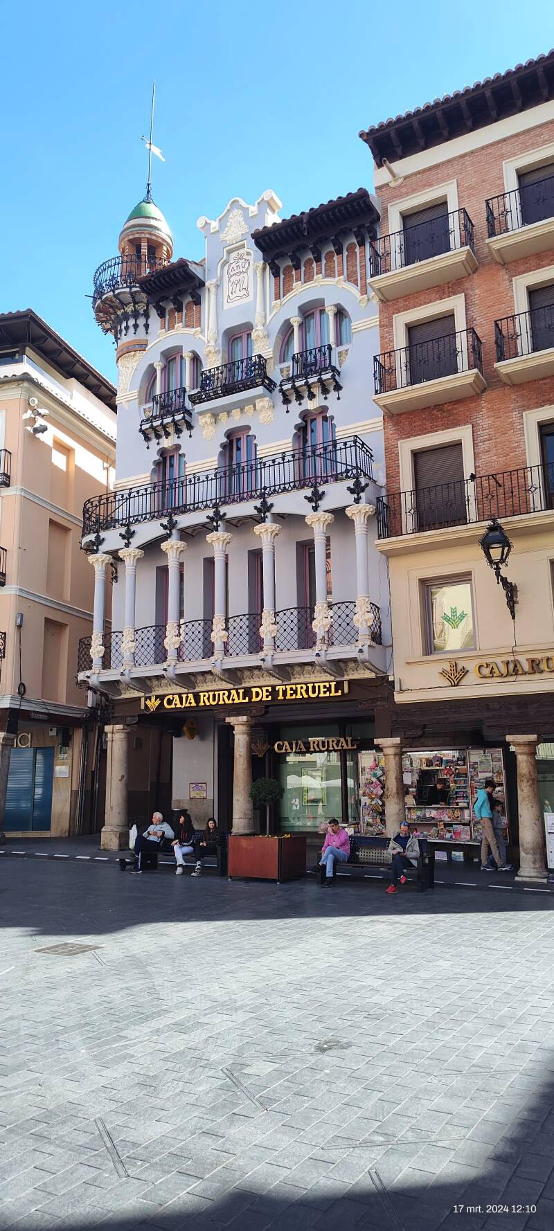 Ook nu hebben we goed geslapen, en doen het rustig aan, eerst ontbijten en de website bijwerken. De mifi geactiveerd met een week bundel van Vodafone met onbeperkt internet. Het is wederom stralend weer, nu is de temperatuur nog wat aan de frisse kant, maar de verwachting is dat het vanmiddag weer boven de 20 graden komt. We gaan om half twaalf op de fiets naar de historische stad van Teruel. het is maar 2,5 km fietsen, het is daar druk, maar wel heel gezellig.