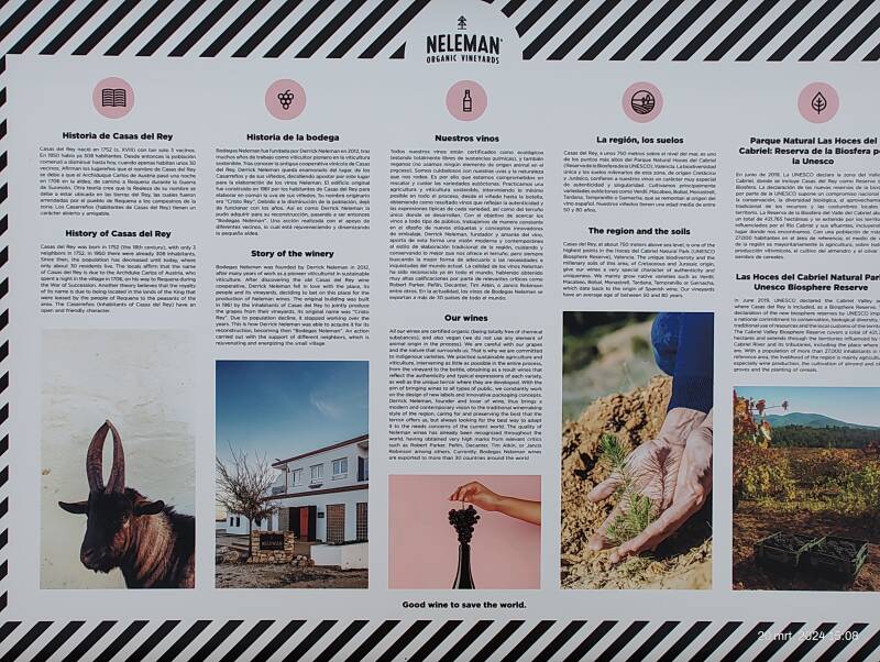 In Casas del Rey vinden de camperplaats die we op gezocht hebben. Het is bij het wijnhuis van de familie Neleman uit Zutphen, die ongeveer 20 jaar geleden in Casa del Rey begonnen is om organische wijn te produceren, d.w.z. dat deze wijn is gemaakt zonder pesticiden en geen chemische toevoegingen heeft, dit betekent werken met de natuur. Je kan deze wijn ook op Google vinden.