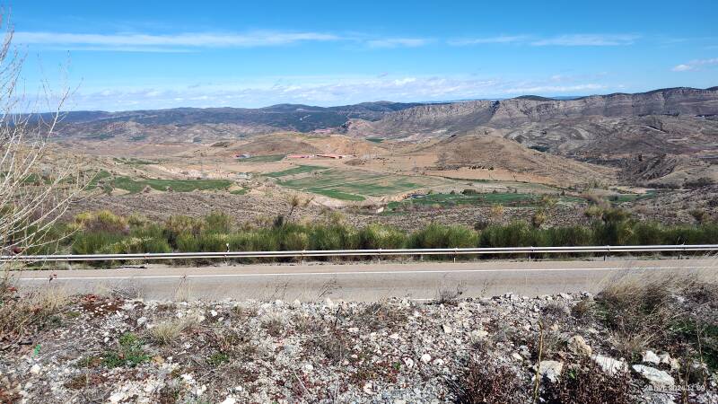 Na een rumoerige nacht, waar campers af en aan reden en elk plekje op de camperplaats benutte om te staan, gaan we na het opstaan eerst nog boodschappen doen en hebben we ook nog thee gedronken op de camperplaats. We rijden binnen door en komen vlakbij Zaragoza op de AP-2 de autovia naar Barcelona, we komen net niet in een file terecht want Fop neemt de afslag om op de N-11 te komen naar Bujaraloz, vandaar rijden we richting Valfarta. Onderweg nog enkel foto's gemaakt.