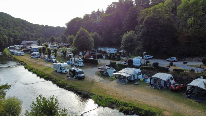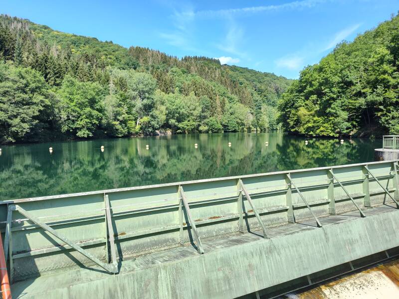 Het is vannacht heerlijk afgekoeld en we hebben lekker geslapen, We gaan om tien uur koffie drinken bij Jan en Wilm en daarna gaan we een stukje fietsen langs de Sûre en komen zo in het dorpje Esch sur Sure. We rijden verder en komen dan bij enkele stuwdammen waar we wat foto's maken, we zijn nu ongeveer 12 km van de camping weg en vinden het genoeg, we rijden dezelfde weg terug en rijden dan nog een stukje door richting Heiderscheid, de weg daar naar toe is een steile klim en halverwege vinden we het genoeg, we keren en rijden terug naar de camping.