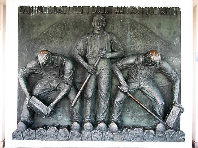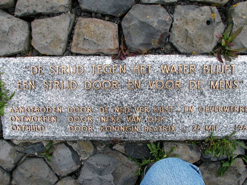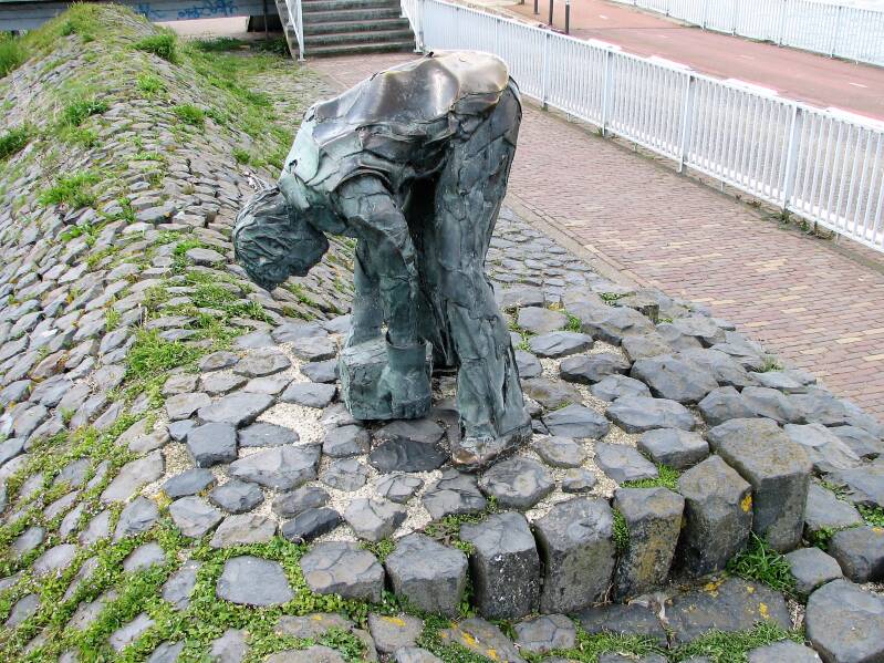We wandelen een stukje over de dijk en bekijken de standbeelden en de plakkaten.