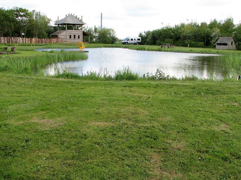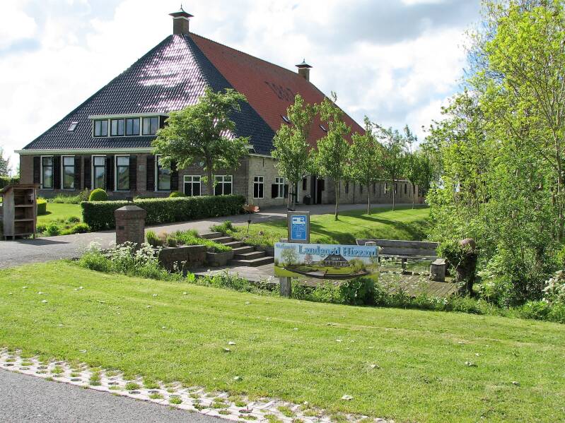 Na de afsluitdijk, die 32 km lang is, zijn we naar Bolsward gereden om nog wat boodschappen te doen. Daarna naar Lollum naar het landgoed de Hizzard, waar een camperplaats is. We worden verwelkomt door Martha de beheerder en worden uitgenodigd voor de koffie, we krijgen de geschiedenis te horen hoe het landgoed is ontstaan uit een melkvee bedrijf wat van vader op zoon is overgegaan. De huidige eigenaars Martha en Piet Kaastra zijn gestopt met het melkvee bedrijf en hebben er een landgoed van gemaakt, waar ook vier camperplaatsen zijn.