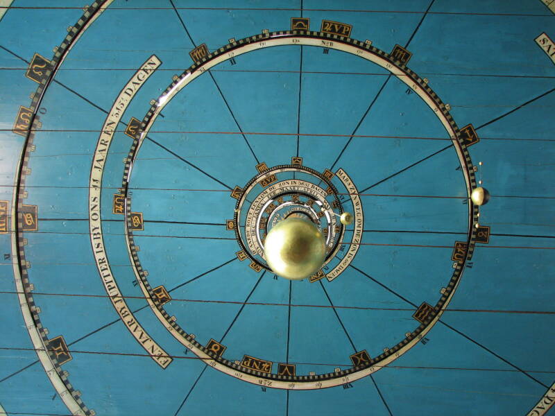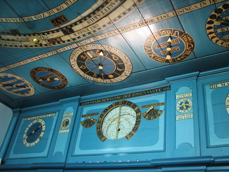 De zon schijnt weer in de camper, het belooft een stralende dag te worden, we ontbijten en rijden om half tien richting Franeker om het Eise Eisinga planetarium te bezoeken. Het is het oudste nog werkende planetarium. Het planetarium is ontworpen door Eise Eisinga die het in zijn plafond van zijn woonkamer heeft gebouwd. Hij is gestart in 1774 en het was gereed in 1781. Hij zelf was een wolwever en in zijn vrije tijd heeft hij dit allemaal gebouwd. het totale planetarium wordt aangedreven door één uurwerk en d.m.v. hulp gewichten. de raderen zijn van eikehout waarin hij vele duizenden handgesmede spijkers heeft aan gebracht.