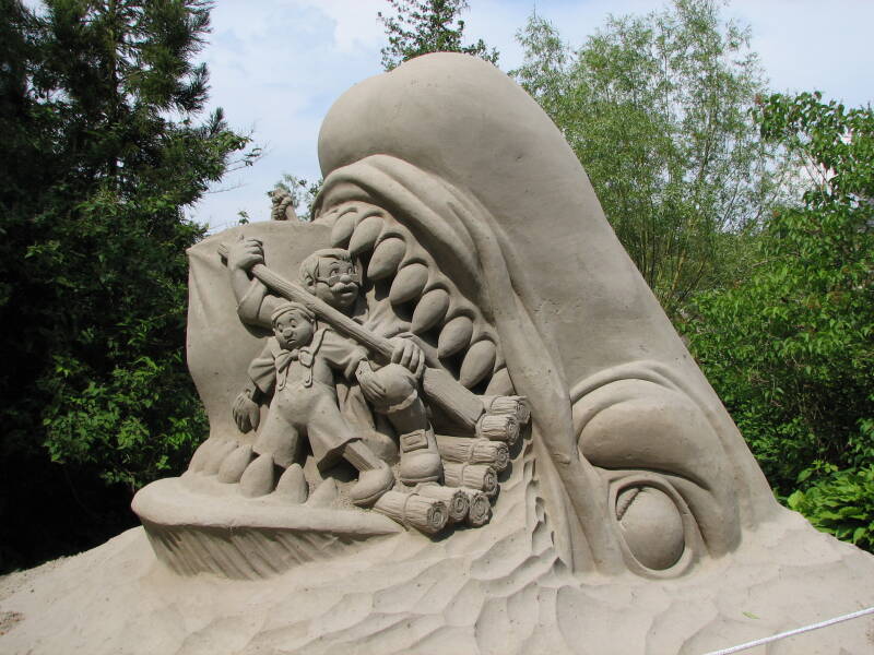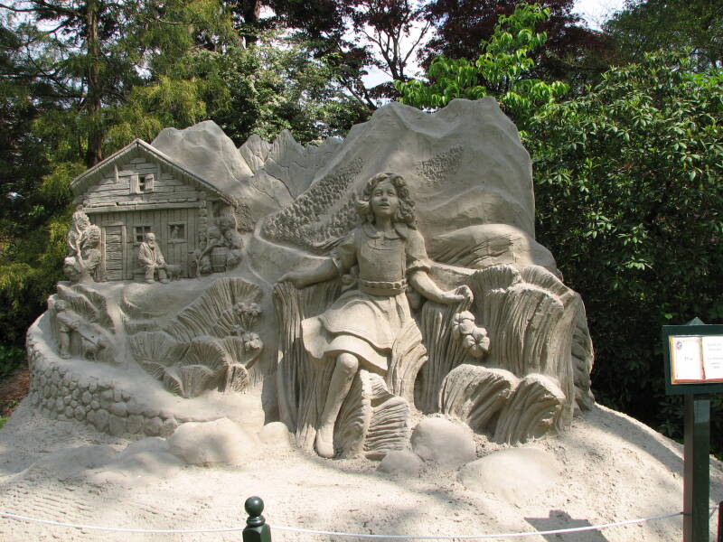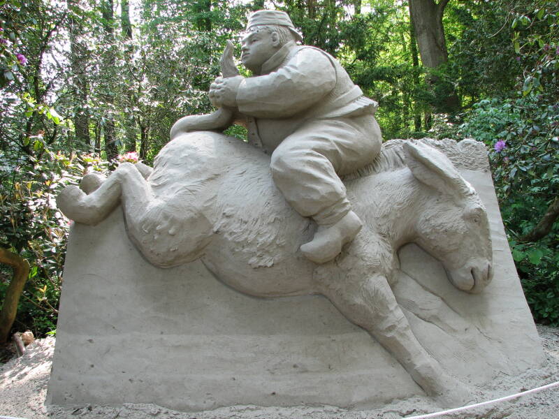 We fietsen verder en komen in Diepenheim, waar we kasteel Warmelo opzoeken en gaan bezichtigen.Het kasteel wordt omgeven door een park, met een totale oppervlakte van 7 hectare. Via een gemarkeerde wandelroute maken wij kennis met de tentoon gestelde zandsculpturen en de vier eeuwen tuin-architectuur. Er zijn vele foto's gemaakt van de sculpturen, wanneer je op een foto klikt wordt deze vergroot weergegeven.