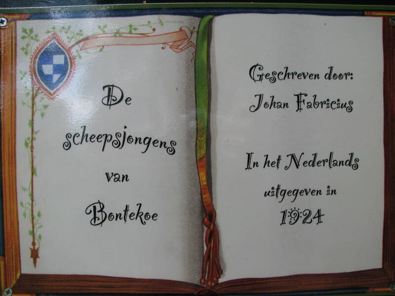 Onder de foto staat het boek genoemd met de titel en de schrijver, en wanneer het verschenen is in het Nederlands