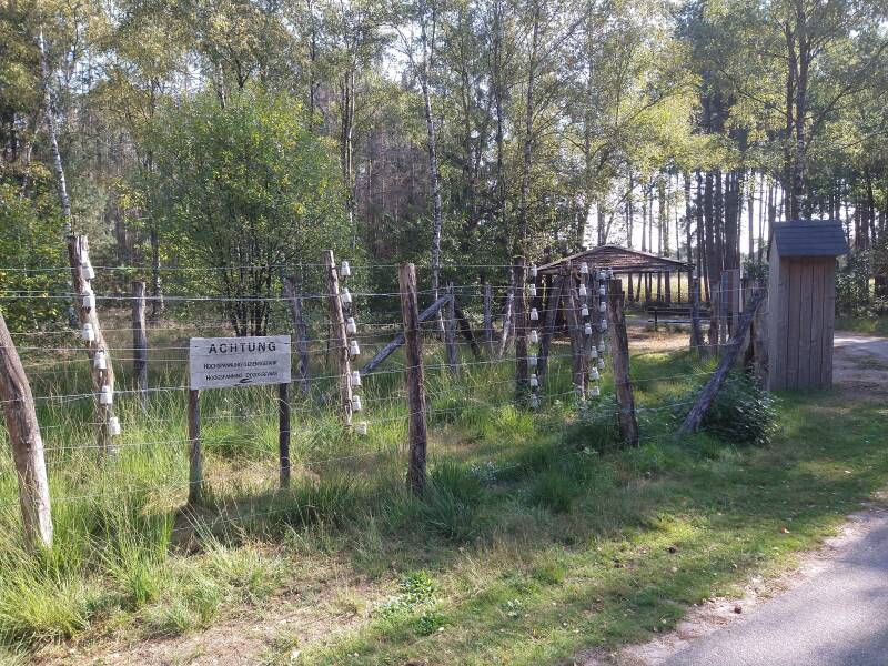 We hebben goed geslapen, we ontbijten en rijden om half elf weg op de fiets voor een rondje fietsen. We gaan niet meer België in i.v.m. Covid19, want het loopt steeds verder op. We rijden naar de grens en gaan dan het pad op door het bos en dan richting Reusel en voor deze plaats richting Bladel. We fietsen over mooie bospaden en komen weer een oude grensovergang tegen met het Stroom draad.