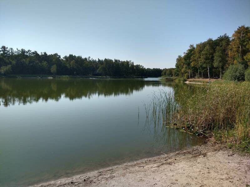 Na de stenen fietsen we verder en zien nog een groot ven waar een visconcours bezig is, na dit moois gaan we op de terugweg naar de camperplaats, we hebben 30 km gefietst, meer dan genoeg.