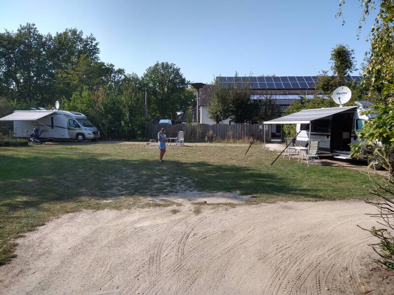 Lisa is direct naar de wasmachine gegaan met haar waszak, ook dit is hier super geregeld, met hyper moderne wasmachines en drogers. De rug van Fop gaat iets beter en we gaan naar het restaurant, wat naast de camperplaats is gelegen, een pilsje drinken, nou het is een Latte Macciato geworden met een pilsje. 's Avonds zijn we in het zelfde restaurant wezen eten. Morgen blijven we nog op deze camperplaats en kijken we of we kunnen gaan fietsen. Dit is afhankelijk van de rug van Fop.