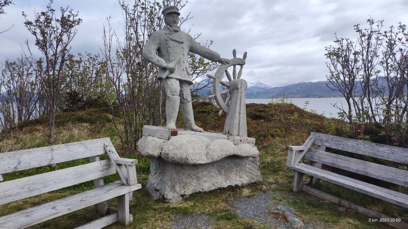 We weten nog niet of we hier één of twee dagen blijven, dit bekijken we morgen wel, hangt ook van het weer af. 's Middags komt Willy de Belg onverwachts twee stukken kabeljauw brengen, die hij 's middags gevangen heeft in de fjord. we nemen deze in dankbaarheid aan. We bedanken hem hartelijk en leggen de moten in het vriesvakje voor over een paar dagen. 's Avonds nog een potje Skipbo gespeeld en wederom verloren. Het is een mooie dag geweest, met prima weer, wel wat fris maar droog. Morgen meer.