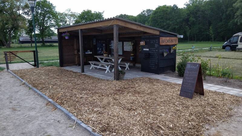 Deze camperplaats bestaat nog geen jaar, en wordt gerund door Marie-José en haar man, met veel enthousiasme, ze zijn heel creatief en verzinnen iedere keer weer wat nieuws om het de camperraars naar het zin te maken.