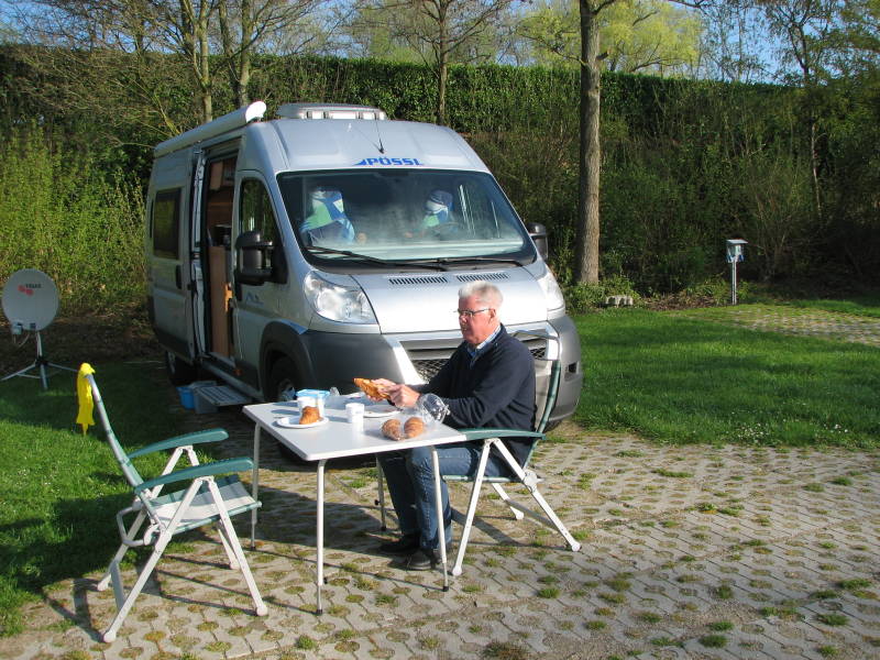 In de avond koelde het snel af, nu zitten we in de camper TV te kijken en hebben de website bijgewerkt, voor morgen zijn de voorspellingen heel goed, en we zijn van plan om te gaan fietsen langs de Waal.