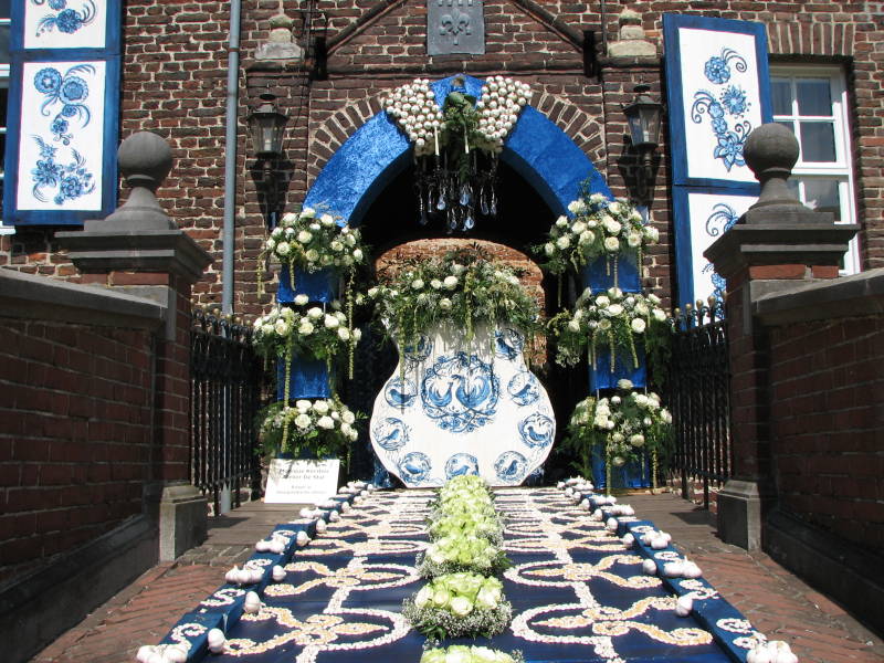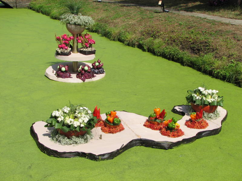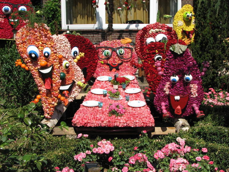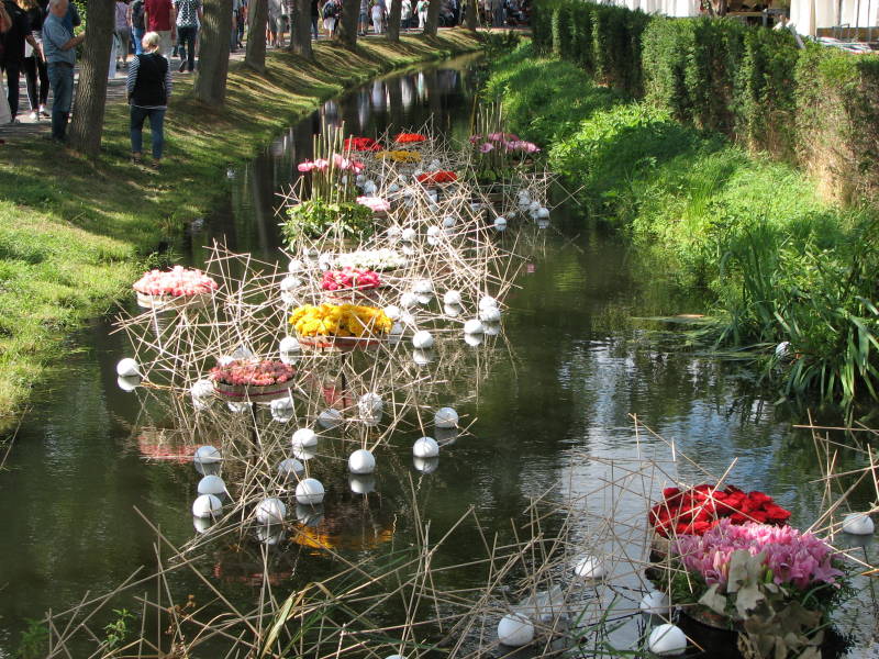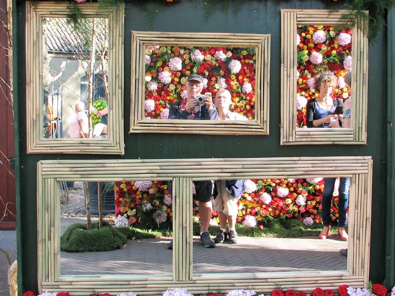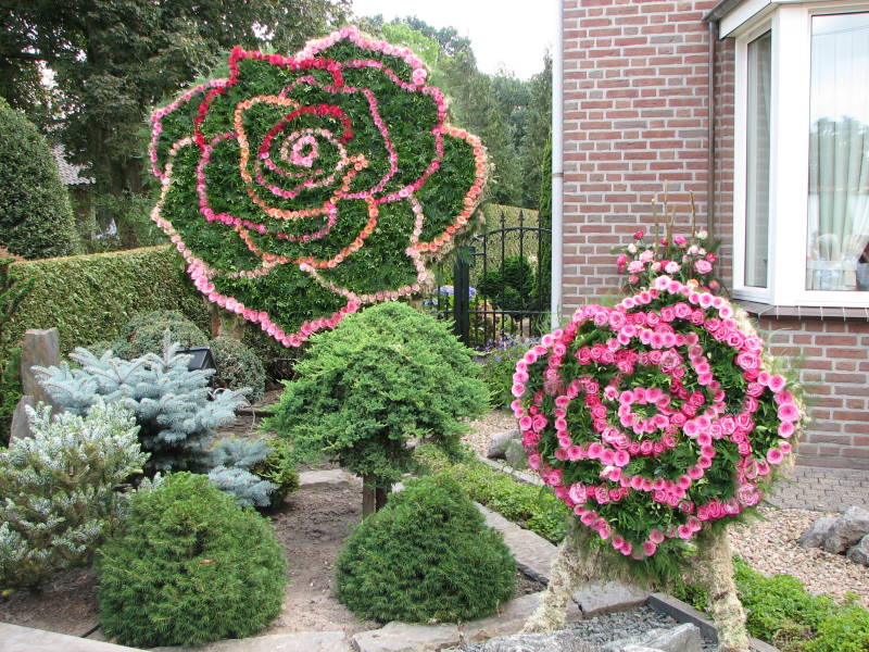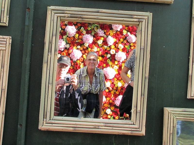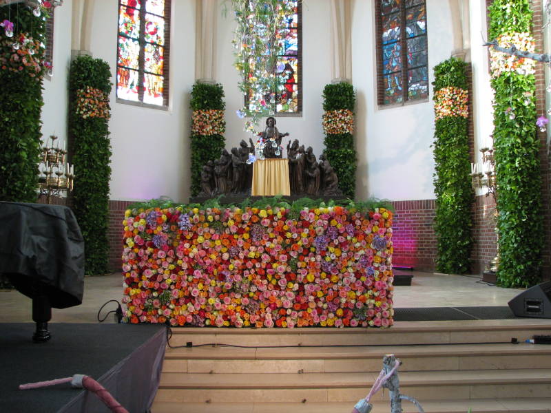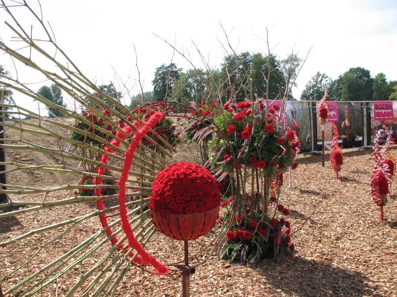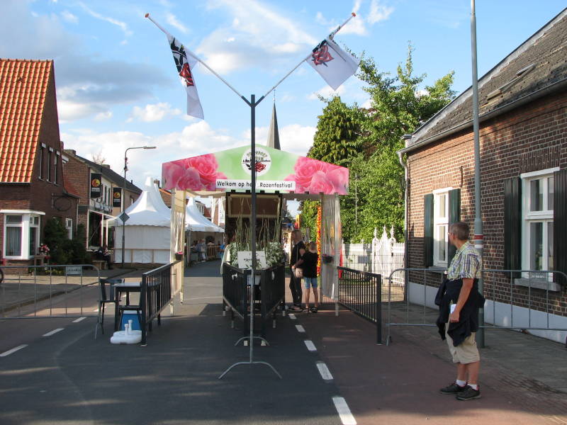 Het heeft vannacht geregend en het is een stuk frisser als de afgelopen dagen, we gaan eerst boodschappen doen in Horst, we gaan naar de Lidl en Aldi, daarna fietsen we terug naar de camperplaats, na het eten van een boterham gaan we in de loop van de middag naar het rozenfestival, wanneer we daar aankomen schrikken we een beetje, het is ontzettend druk, maar we gaan naar binnen en lopen een gedeelte wat we nog niet gezien hebben, overal rozen en mooie creaties, het is heel mooi, maar ook heel druk, wanneer je de kerk in wil dan is er nu een wachttijd, niet prettig. We hebben nog wat foto's gemaakt en wanneer je er op klikt vergroot de foto. Hieronder nog een impressie van het rozenfestival.
