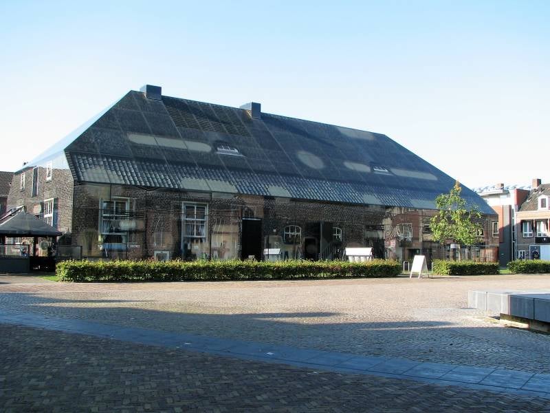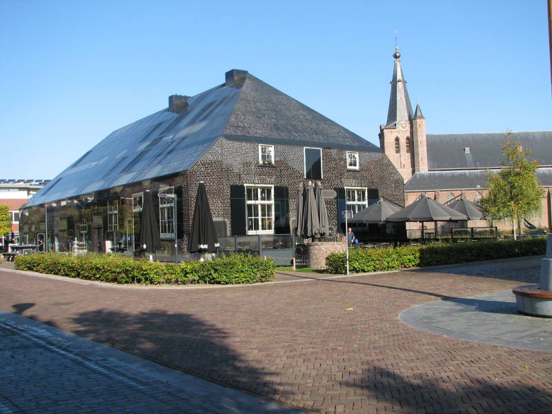 Zondagochtend buiten in het zonnetje ontbeten en koffie gedronken. Om ongeveer 11.00 uur richting Schijndel gereden op de fiets naar het centrum om een paar plaatjes te nemen. We hebben gelezen dat er een "Glazen Boerderij" is gebouwd in het centrum van Schijndel, op de plek waar een bom is gevallen in de tweede wereldoorlog, met de actie "Marked Garden" in 1944. Het gebouw is in 2013 gerealiseerd.