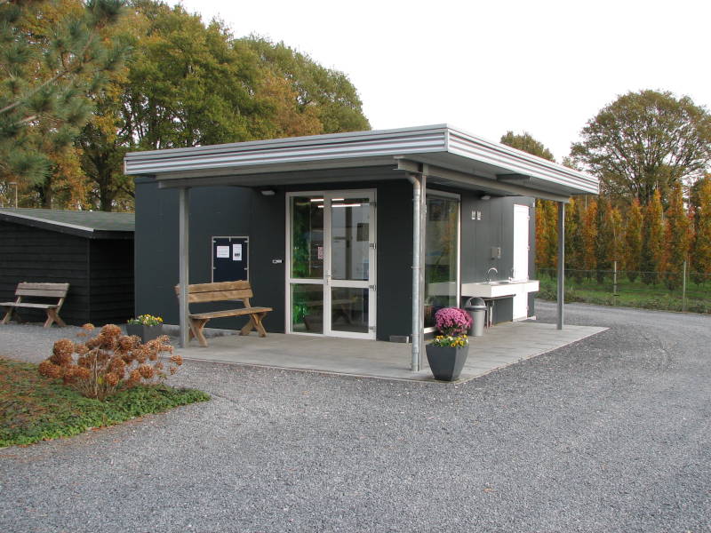 Op de camperplaats is een "praathuis", waar je gezellig met elkaar kan zitten met een houtkachel, ook het sanitairgebouw is prima verzorgd.