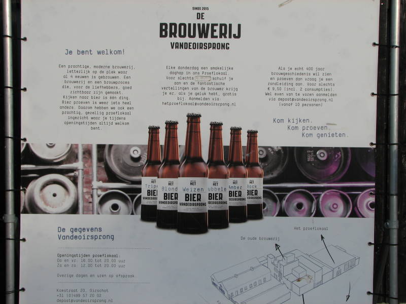 's Middags gaan we naar Oirschot, waar we naar de voormalige bierbrouwerij gaan van de familie de Kroon, tegenwoordig heet deze bierbrouwerij Vandeoirsprong, deze brouwerij maakt nu op kleine schaal speciaal bier. De rondleiding is interessant en de gids, een man die daar al vanaf 1979 werkt, heeft alle ups en downs meegemaakt, hij vertelt met veel enthousiasme over de geschiedenis van de brouwerij en hoe het er nu aan toe gaat.