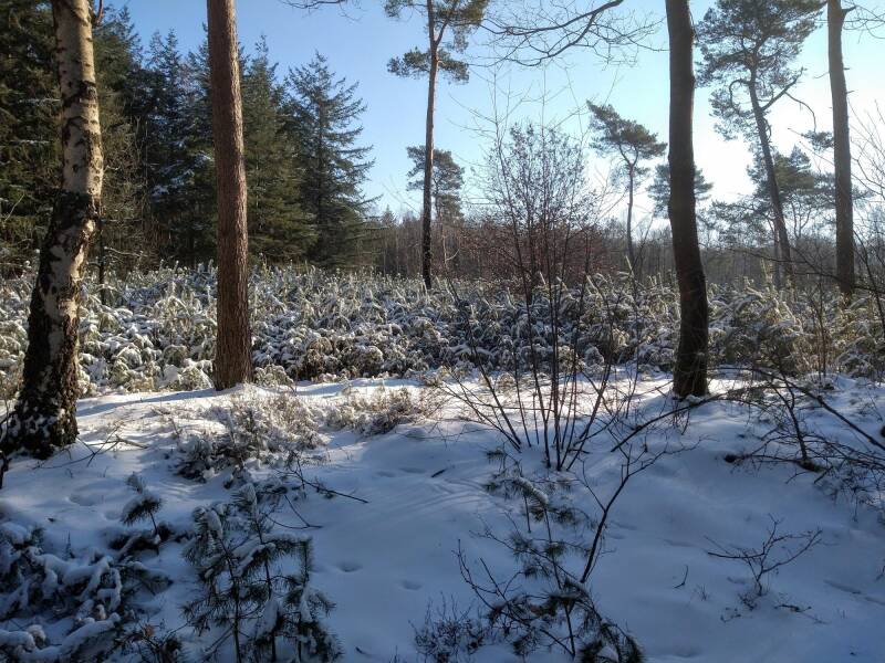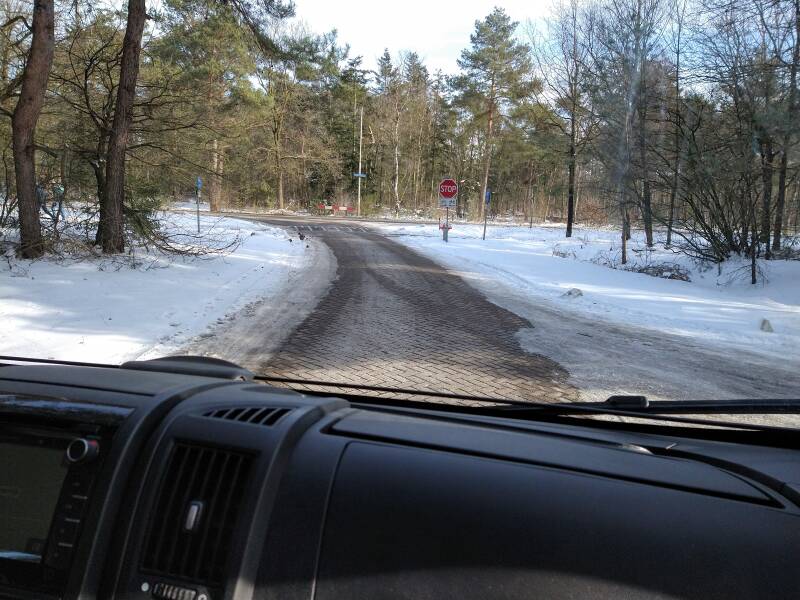 We krijgen kennissen op visite waarmee we gaan wandelen, de familie Peeters, zij arriveren om kwart voor elf en drinken nog een bakje koffie, buiten de camper, het is wel koud, want het vriest nog vijf graden. We lopen eerst door het bos en daarna richting Vessem en dan langs het beekje de Kleine Beerze en zo terug naar de camperplaats.