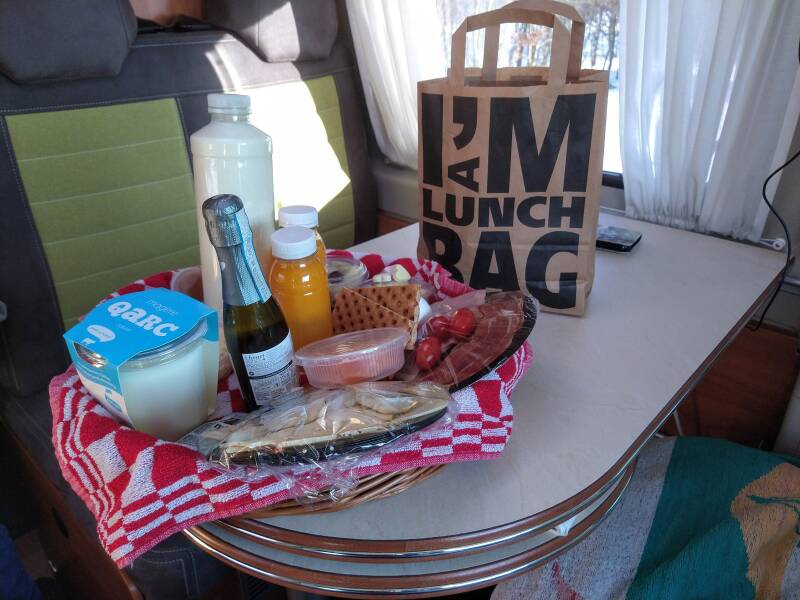 Ook nu is het een koude nacht geweest, het heeft wederom matig tot streng gevroren, -10 is het geweest. We hebben een Valentijns ontbijt besteld en dat wordt om half tien bij de camper bezorgd. Het ontbijt ziet er uitstekend uit en we genieten ervan, Hartelijk dank Marie-José en Irla voor de goede verzorging. van dit overheerlijke lekkers.