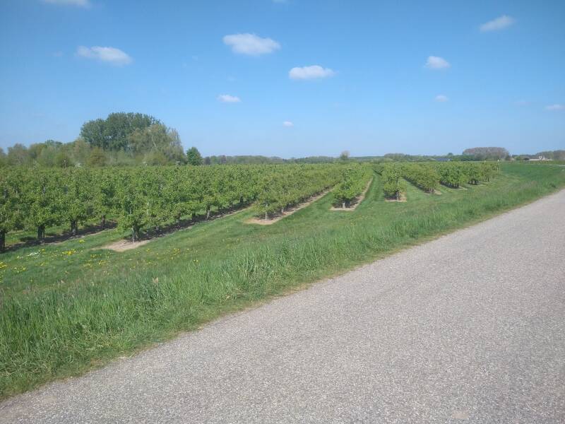We hoeven niet vroeg op te staan, we komen om half negen uit bed en het weer is zodanig dat we buiten broodjes kunnen afbakken. We nemen er de tijd voor en gaan daarna een stukje fietsen naar Buren, drinken daar een kopje koffie en gaan dan langs de Linge fietsen en maken een grote ronde en gaan dan zo terug naar de camperplaats.